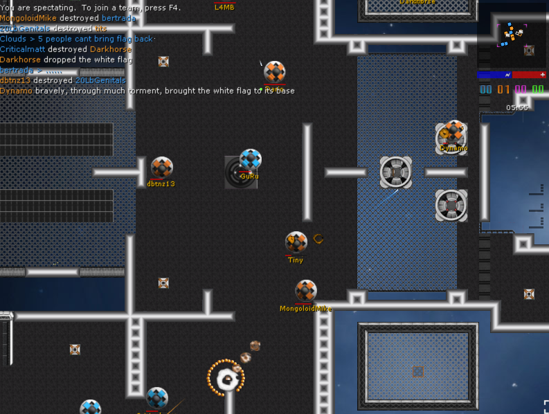 The game is easy to play yet addictive for many. Its a real time action game where there are usually 2 teams but there can be up to 4 in any given map. You can shoot lasers, missles, bouncies and nades at your opponents in real time. When you die, you simply have to wait a predefined amount of time (usually less than 20 seconds) to respawn. Capture the flags and return them to your teams base to win.
