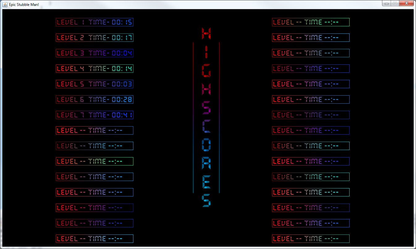Epic Stubble Man [Demo].jar Updated 1/16/2012 :: Highscores works now :: Splash Screen between levels :: Music/Sounds added