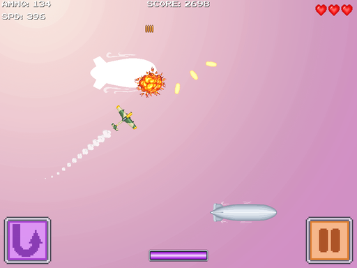 My name is Vladimir, I’m a developer from Latvia. I wanted to share my current project, small shoot-em-up Frequent Flyer, and occasionally post updates here. The aim of the game is simple: fly your plane around, eliminate enemies.