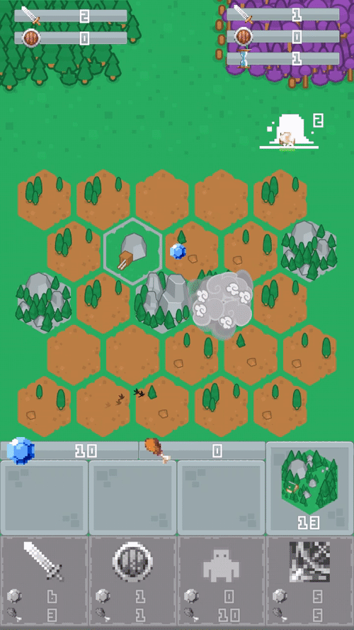 In this game - Hexival, You have to build your kingdom using limited amount od hexes while defending your land from incoming monsters.