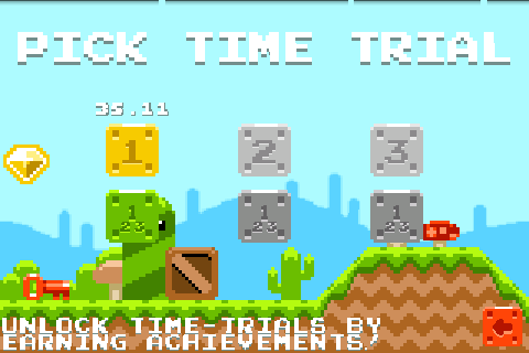 As compensation I’ll let you feast your eyes on the level-pick screen for the Time Trials that I am adding to the game, which is currently work in progress.