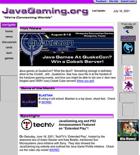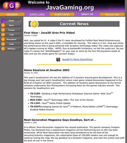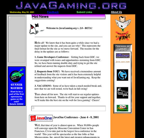 Almost a decade ago, while sitting on a conference call to discuss how Java technology could be improved for video game development, the consensus was that we needed a community. So, armed with a mute button for the concall, a domain provider and a $15 charge to my credit card, JavaGaming.org was born. The goal was to create a community that would become a focal point for the growth of Java in game development and provide an open, candid forum for discussion and discovery. Through the ups and downs what we have built, collectively, is the strongest community for game development in Java technology on the web. Bar none.