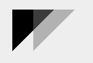 The second triangle is 50% opaque and should not appear over the black 100% opaque triangle.