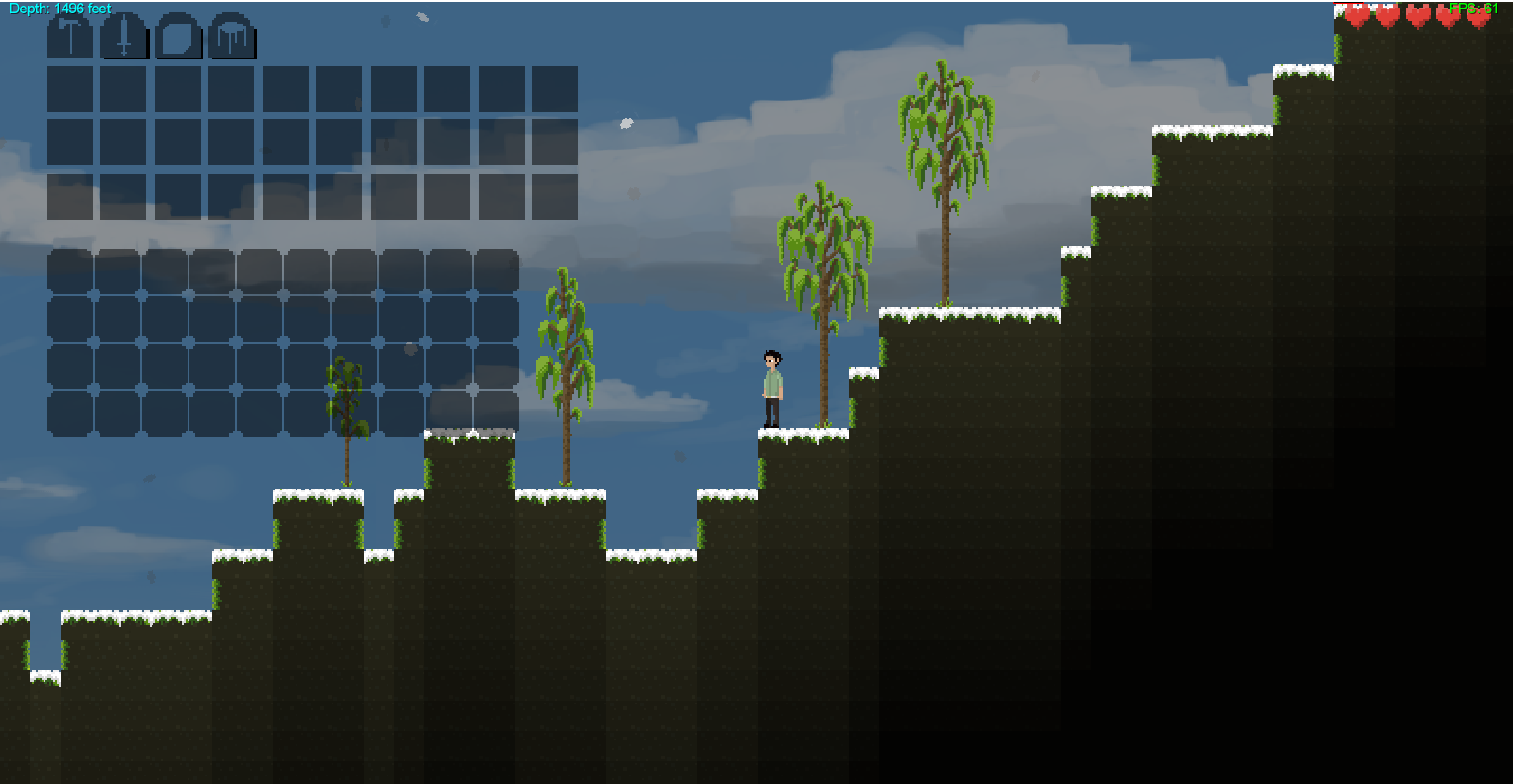 Player moves quicker, wood block should always get removed (click twice on them), wooden block cannot be placed in player position, snow landing tiles fixed.