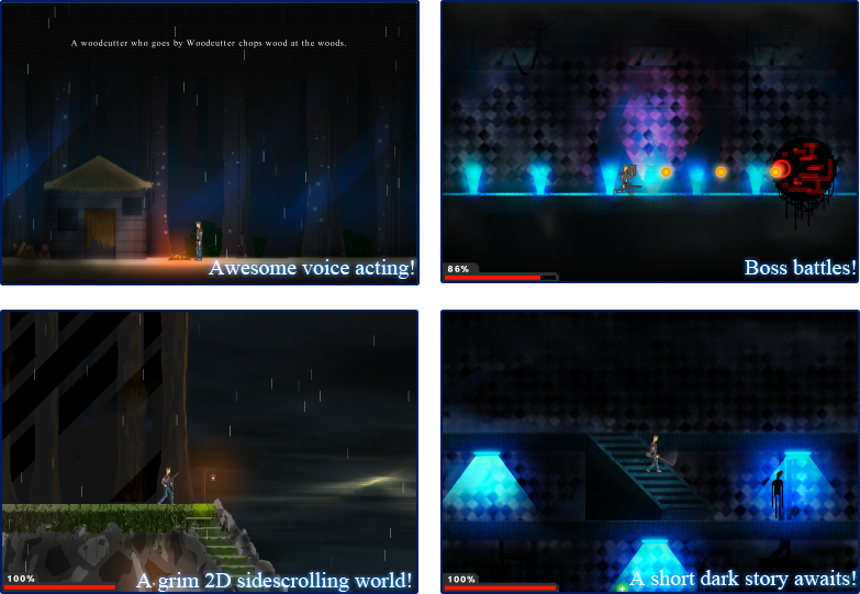 A 2D sidescrolling platformer, retelling a grim story about mankind’s final struggle for survival. You’ll be playing the role of the woodcutter, who will attempt to uncover the dark story behind humanity’s downfall.