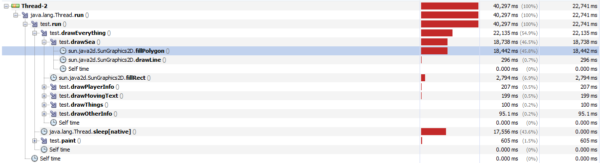 right after you create a BufferedImage for OffscreenImage. More or less the general advice you get around JGO is often “defensive” in nature. Last time I heavily worked with Java2D was from '02 to '08 and back then the VolatileImage API was the way to go. It’s not clear at which point, re: JDK 6/7/8, BufferedImages get accelerated more or what exactly is the promotion strategy or how translucent images are handled. Using VolatileImage API was very important for translucent images back in the day. If you are trying to support older computers with older versions of Java even Java 5 (1.5) then VolatileImages may be a win. Again measure. The code needed to load and verify VolatileImages is in the tutorial I linked to previously. It’s going to add a slightly finicky aspect to your render loop, but one worth measuring especially on any older machines you are testing on…