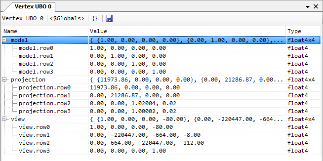 So I’ve started to switch a project over from using old deprecated OpenGL to the new core profile stuff. So while reimplementing the perspective camera, and then running the program, I noticed that nothing was being drawn, or everything was off the screen. So I opened up the debugger and saw this in the mesh view.